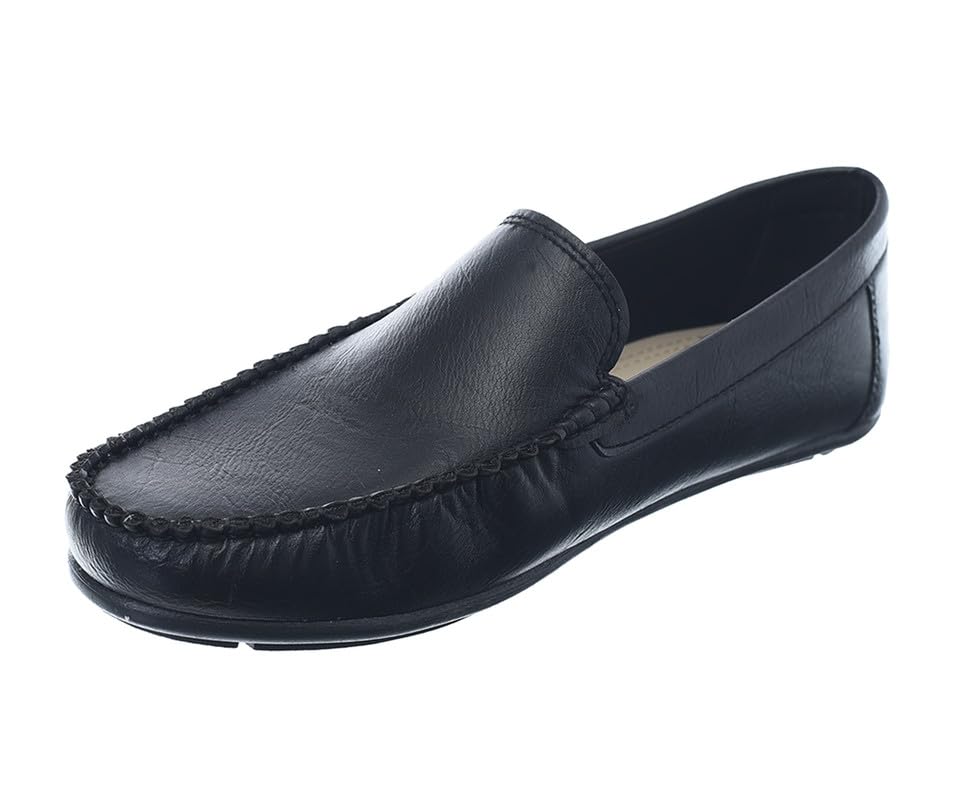 genuine - جينوين حذاء جلد لامع كلاسيكي سهل الارتداء للرجال - اسود، مقاس 41 EU