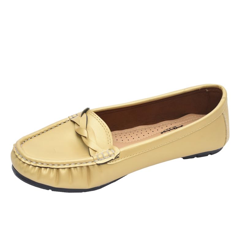 genuine - genuine Women Natural And Leather Casual Loafers Shoes Gold, 38 EU Narrow