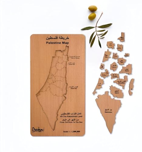 - Educational wooden puzzle designed as the map of Palestine, encouraging children to learn geography interactively through fitting labeled regions into their correct places.