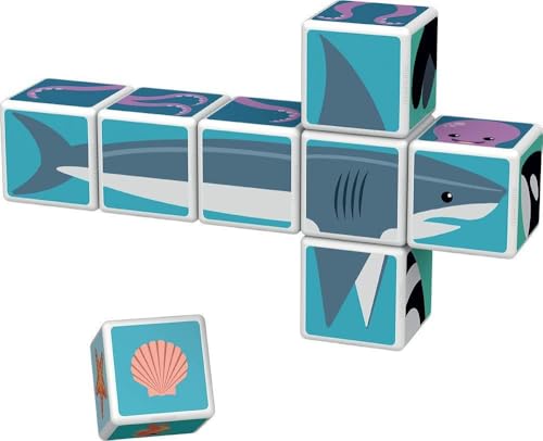 Geomag - ألعاب مغناطيسية تعليمية مطبوعة للحيوانات البحرية + بطاقات، مصنوعة في سويسرا، من البلاستيك المعاد تدويره بنسبة 100%، ألعاب مفتوحة الأطراف للأطفال، من عمر سنة فما فوق، من جيوماج ماجيكيوب