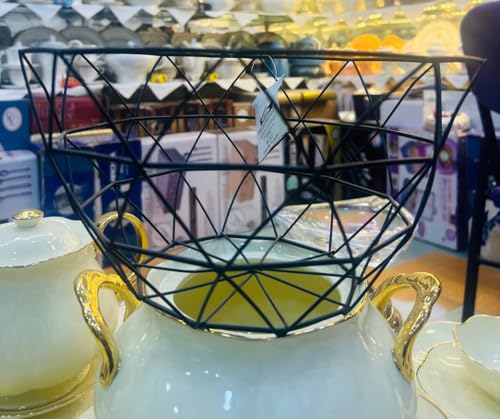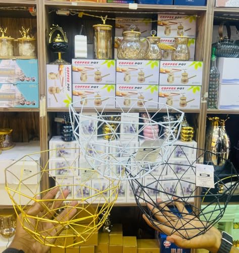 Generic - وعاء فاكهة من اسلاك معدنية هندسية، سلال تخزين فواكه من الحديد لتزيين طاولة المطبخ والخضراوات والخبز والوجبات الخفيفة والمجففات (اسود وابيض، ذهبي)