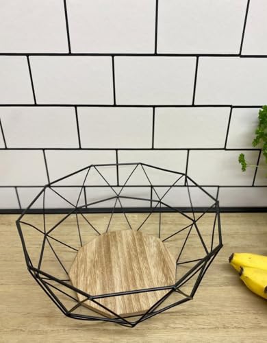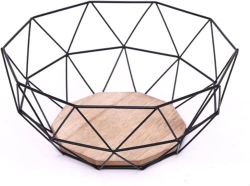 - Geometric Design: Fashion Fruit Basket with Unique Geometry Design Combines Black Metal Frame and Wooden Base