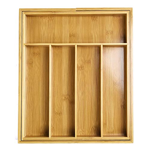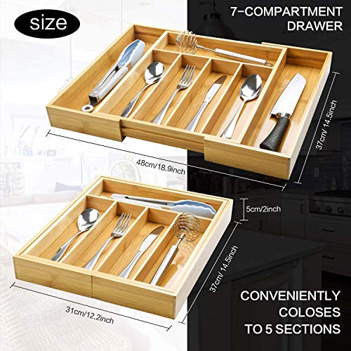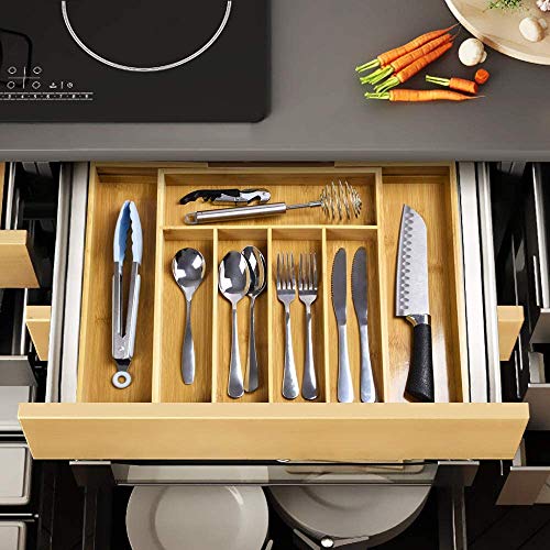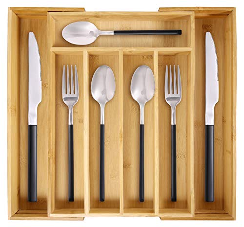 Gerap - Bamboo Kitchen Drawer Organizer and Utensil Holder - Expandable Cutlery Tray for Kitchen Utensils, Flatware and Silverware with 7 Compartments