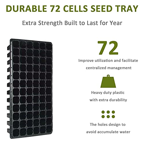 - 🪴 PREMIUM THICK PLASTIC MATERIAL - Super thick PVC plastic material, the weight of each seedling tray is 150g. BPA free, it is harmless to plants and can be reused to save your cost. The size is 21x11x1 8 inches. Each plug tray has 72 cells. 10 packs set, convenient for your seedling work.