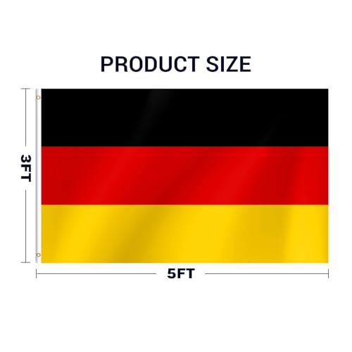 pretty_jessie - علم ألمانيا مقاس 91 سم × 1.5 م، مناسب للحفلات والمسيرات والفعاليات الرياضية والأعياد الوطنية والديكورات الداخلية والخارجية