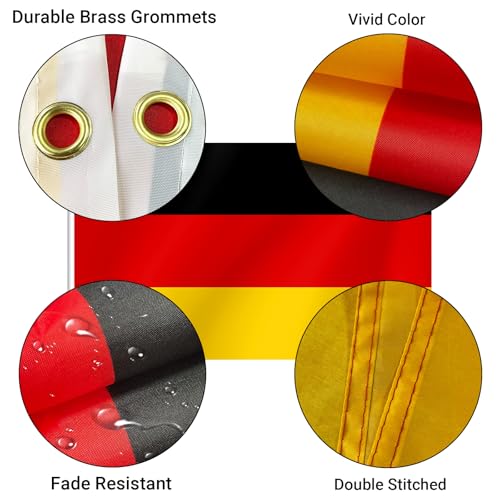 - مقاوم للرياح للاستخدام في الهواء الطلق: هذه الأعلام الألمانية مصنوعة من البوليستر المتين مع خياطة معززة على طول الحواف، لذا يمكن أن تتحمل مختلف الظروف الجوية. يبقى في أفضل حالة حتى في الظروف العاصفة أو الممطرة، مما يضمن الاستخدام طويل الأمد في الهواء الطلق.