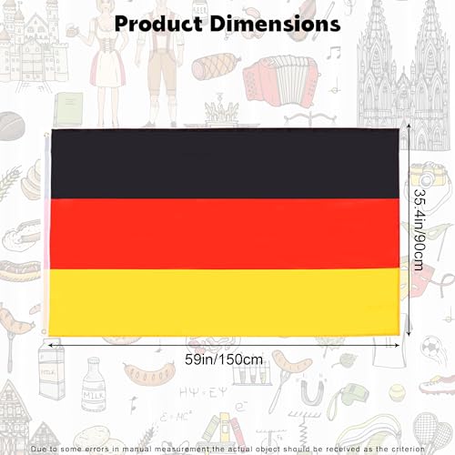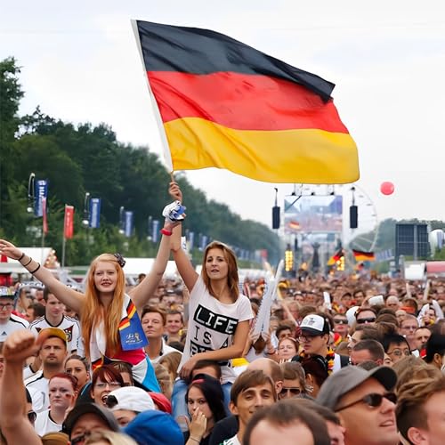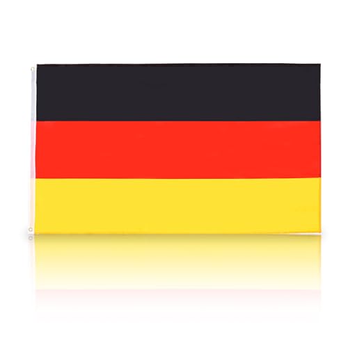 MEUTL - علم ألمانيا مقاس 1.50 م × 90 سم، علم ألمانيا من البوليستر للمناسبات الرياضية والمسيرات، ألوان زاهية للاستخدام الداخلي والخارجي، بوليستر مقاوم للعوامل الجوية للمهرجانات والحفلات