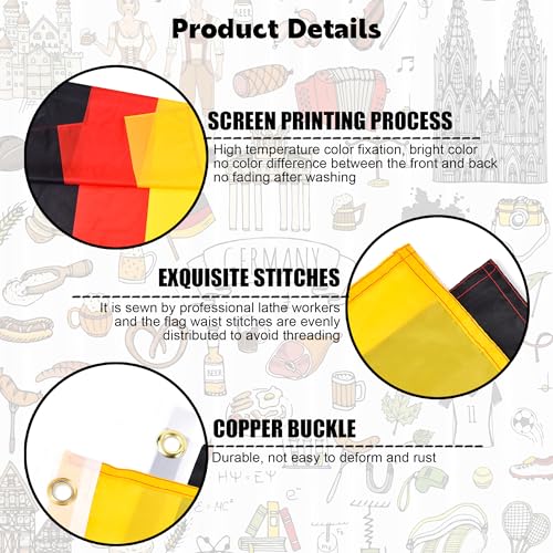 - جودة ممتازة: تم تصنيعه من البوليستر المتين، يضمن علم ألمانيا الخاص بنا متانة تدوم طويلًا وألوانًا زاهية.