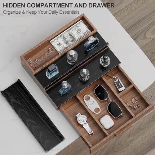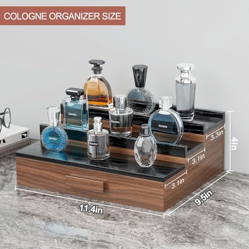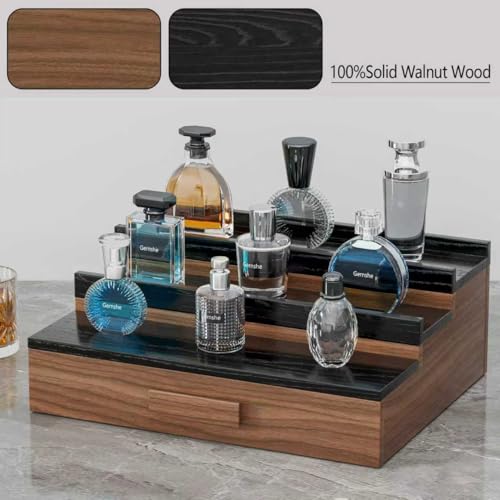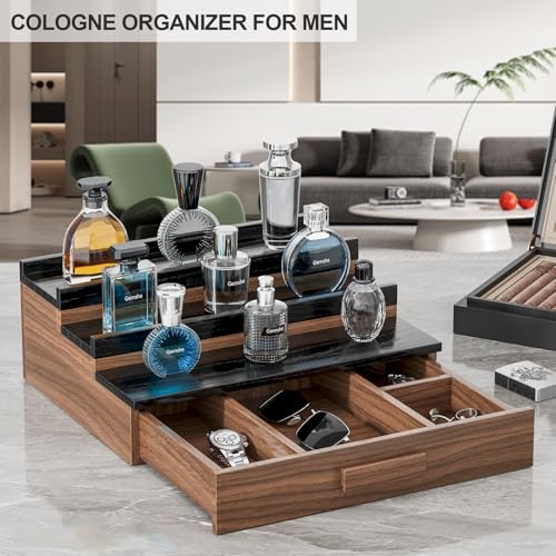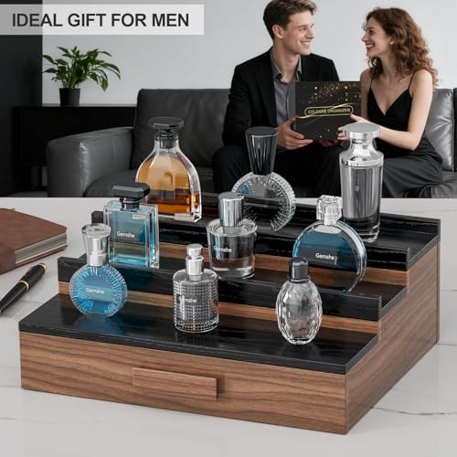 Gernshe - منظم عطور للرجال، حامل عطور مكون من 3 مستويات مصنوع من خشب الرماد، رف عرض للعطور مع درج تخزين وجيب مخفي، رائع للرجال بمناسبة عيد الأب