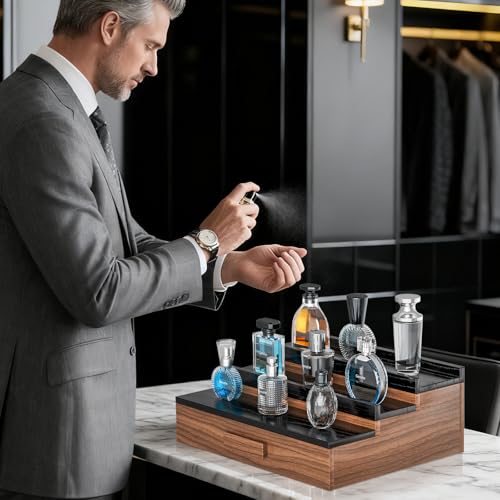 - حامل كولونيا للرجال: يتميز منظم حامل الكولونيا هذا للرجال بتصميم من 3 طبقات. يحمل رف عرض الكولونيا هذا بأمان أكثر من 12 عطر. تصميمه السلم يحول طاولة الزينة الخاصة بك إلى عرض أنيق، مما يجعله منظم عطور ممتاز يمزج بين العملية والجماليات الخالدة