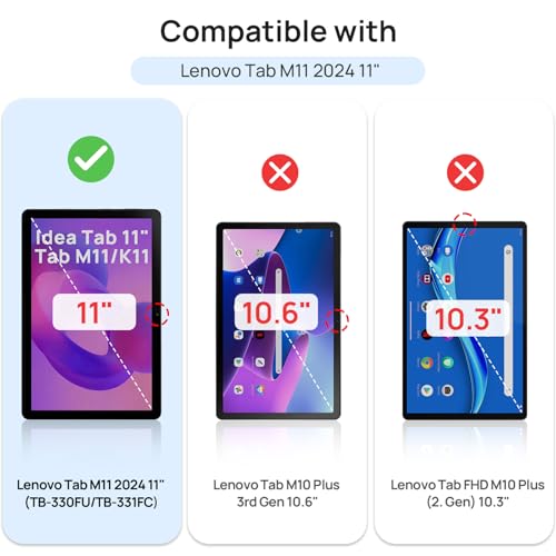 - [Compatibility]: Tempered Glass Screen Protector for Lenovo Tab M11 / K11 2024, TB-330FU/TB-331FC/TB-330XU, 11 inch ; Lenovo Idea Tab 2025, 11 inch, Models: TB-336FU, Not fit any other tablet models.