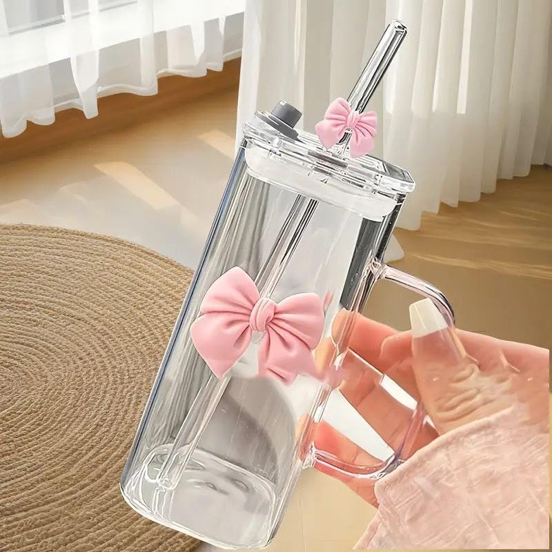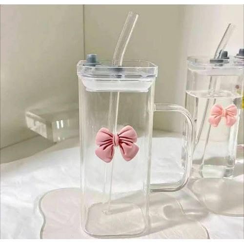 Generic - Get A High Quality Glass Mug With Glass Lid And Shalimoh Color Matching With Attractive Bow, Made Of Heat And Cold Material To Give You A Distinctive And Elegant Drinking Experience (Pack Of 2)
