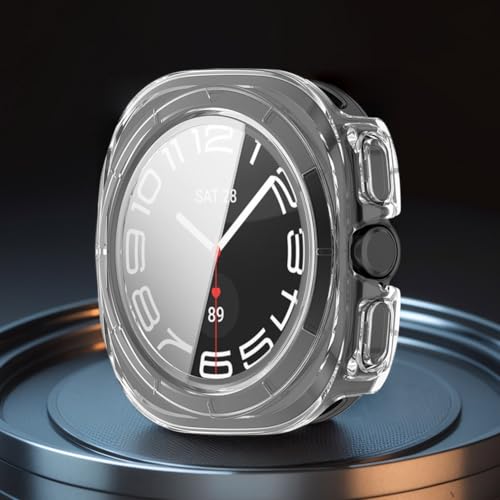 GETBSTOOP - جراب حماية بتغطية كاملة من البولي كربونات الصلب + شاشة الزجاج المقوى لساعة جالاكسي الترا 7 مقاس 47 ملم جيتبستوب، أبيض شفاف وناعم