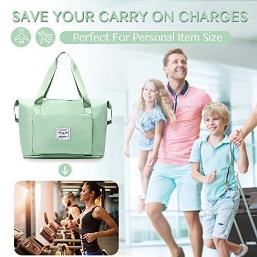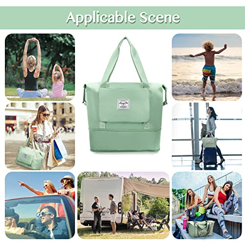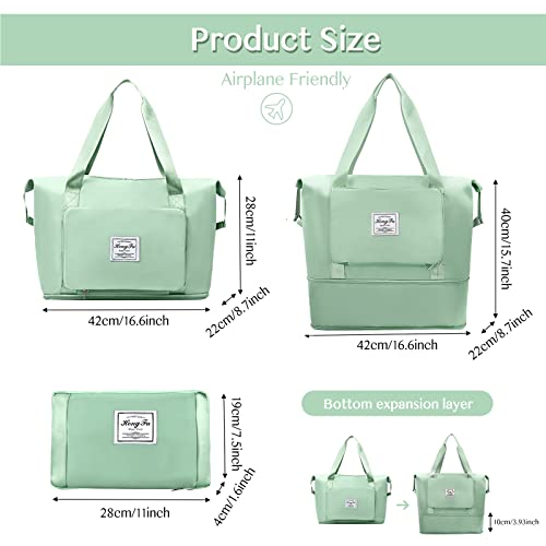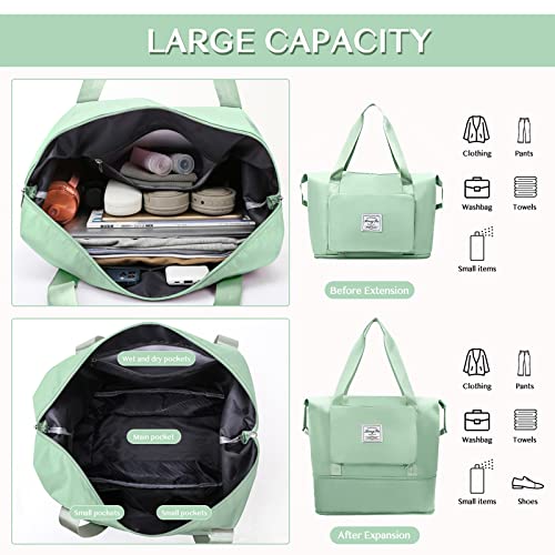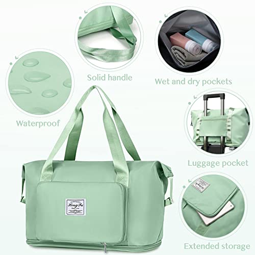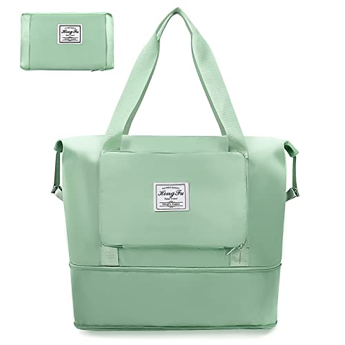 Getervb - Foldable Travel Bag Large Capacity Sports Bag Waterproof Expandable Weekender Carry On Handbag with Wet Compartment for Fitness Gym Travel Beach Airplane, B Green