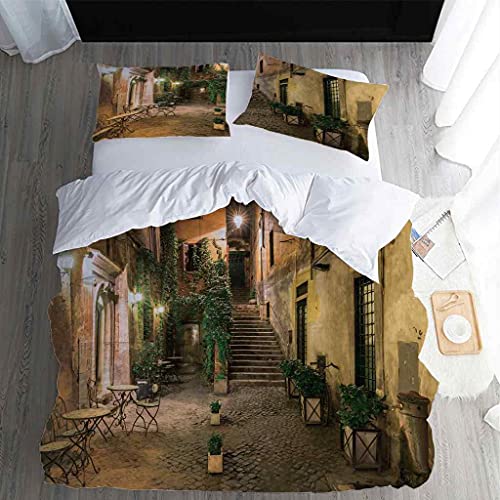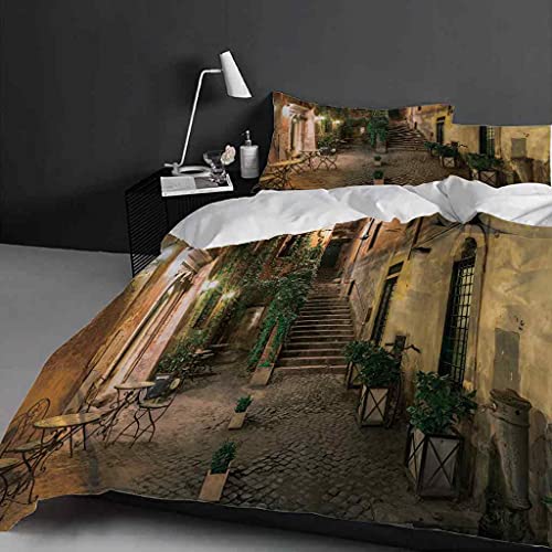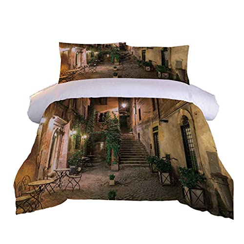GFWDPG - King Size Beds Duvet Cover View of The House (62"x88") Super Soft Duvet Cover with Zipper Closure, Easy Care Microfiber Duvet Cover for Adults with 2 Pillowcases.