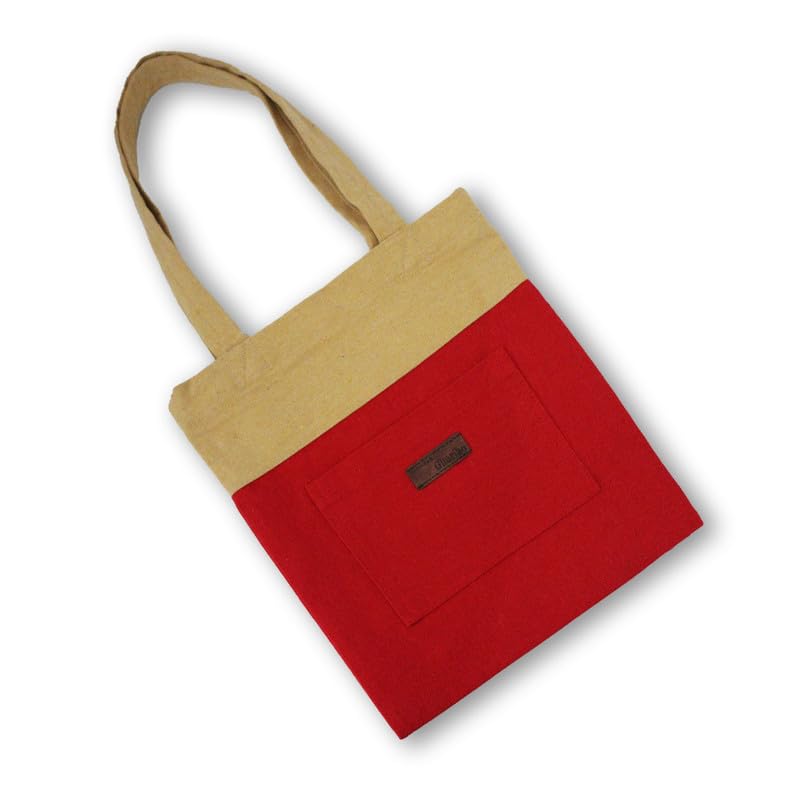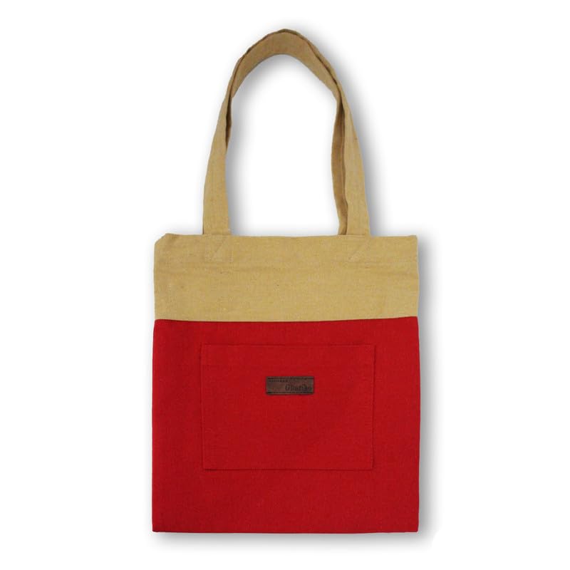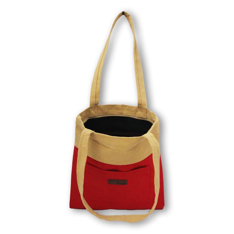 GHARIBO BAGS - GHARIBO BAGS Womens Linen Tote Bag In Tow Colors And An Outer Pocket R230134B 34 × 40 Cm Red