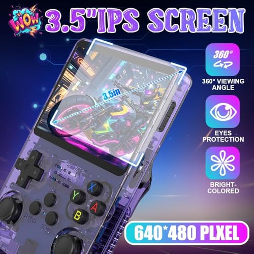 KUWUNG - GHAZAL R36S Handheld Game Console, Retro R36S Game Console with 64G Built-in 15000+ Classic Games, Open Source Linux System 3.5 Inch IPS Screen Portable Games Consoles for Teens and Adults (Purple)