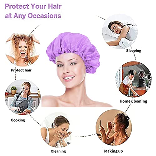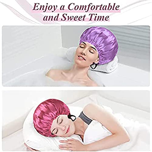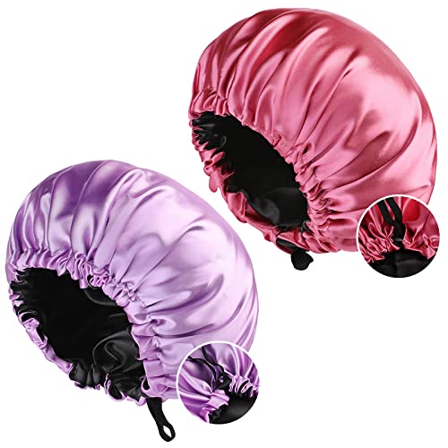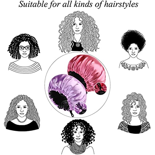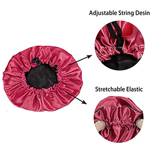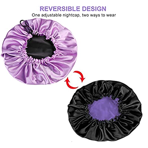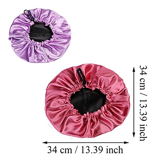 GHEART - قبعة نوم من الساتان، قبعة نوم حريرية، بونيه ساتان مزدوج الطبقات، قبعة حريرية للنوم، قبعة نوم قابلة للتعديل، غطاء رأس ناعم للنوم، عبوة من قطعتين (أحمر بطيخي + أرجواني فاتح)