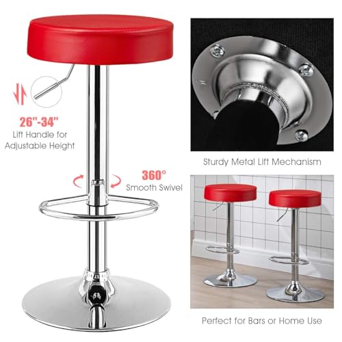 GIANTEX - Giantex 1 Pack Bar Stool, Pub Swivel Barstool Height Adjustable, Armless Counter Height Bar Chair w/PU Leather, Modern Sleek Style Kitchen Counter Stools, Dining Chairs (1, Red)