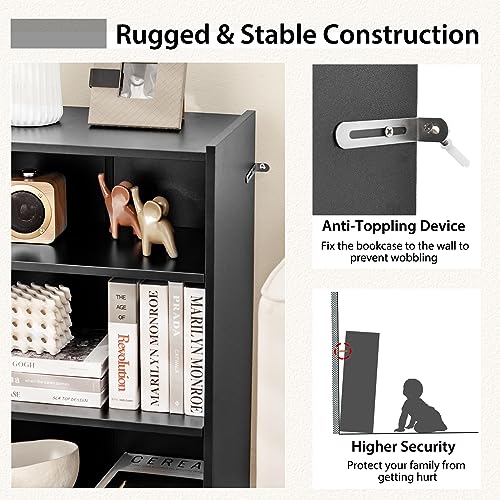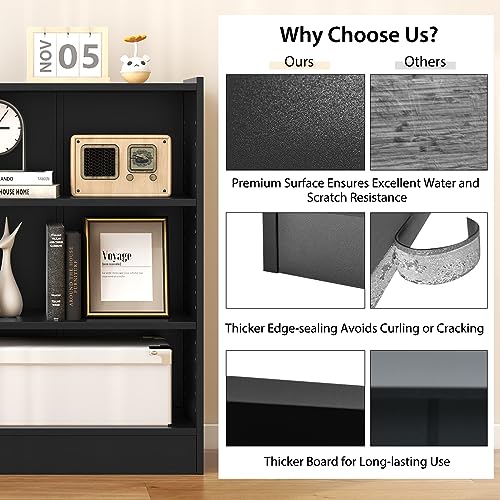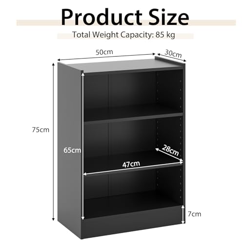GIANTEX - Giantex 3-Tier Bookcase, Floor Standing Open Bookshelf, Modern Display Cabinet with Adjustable Shelves & Anti-toppling Device, Wood Beside Storage Table for Living Room, Bedroom, Study (Black)