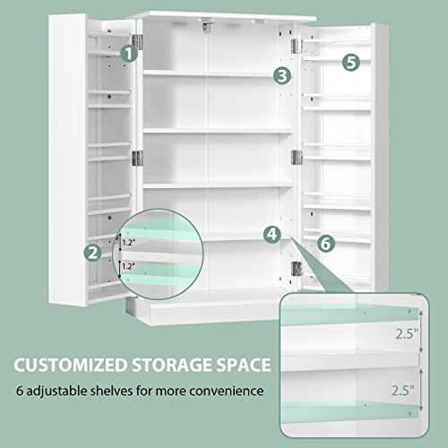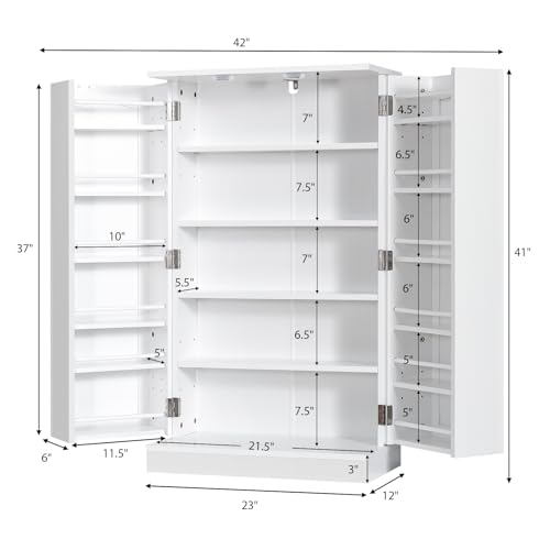 - [Unlock Storage Potential]: Enjoy a well-organized culinary space with this kitchen pantry, featuring 5 roomy shelves and 12 spice racks on double doors, each safeguarded by a guardrail. This cabinet is your go-to for quick, clutter-free access to spices and more!