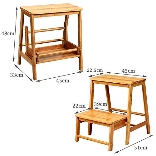 GIANTEX - سلم من البامبو قابل للطي، 3 طبقات، مسند، سعة التحميل: 150 كجم، الارتفاع 66 سم، يمكن استخدامه كمقعد أو سلم للأطفال، حامل نباتات الحديقة، مضاد للانزلاق،