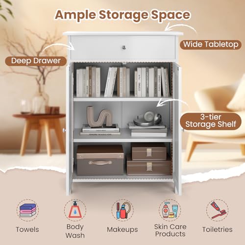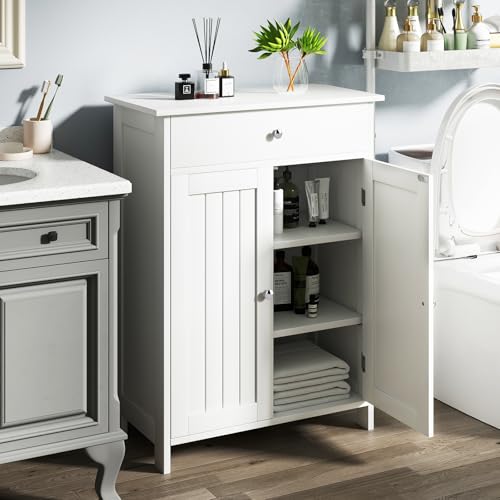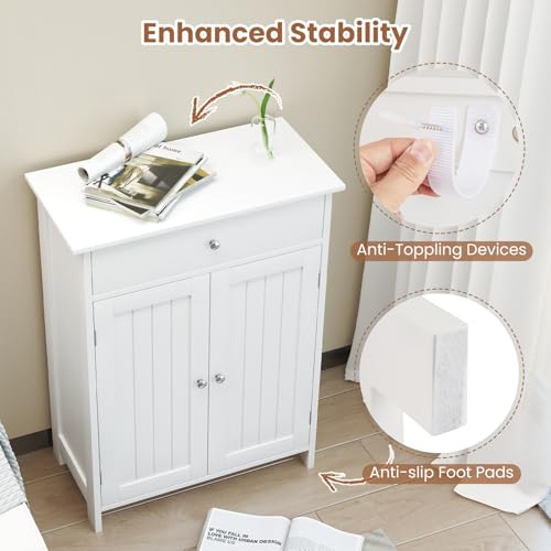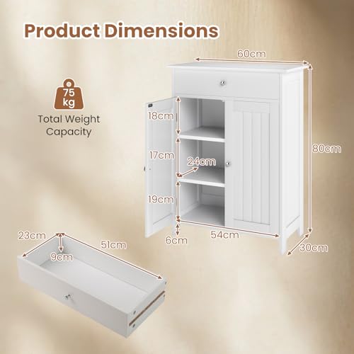 GIANTEX - GIANTEX Bathroom Cabinet, Freestanding Bathroom Cabinet with 2 Doors, 1 Drawer and 3-Way Adjustable Shelf, Base Cabinet for Living Room, Entryway, Kitchen, 60 x 30 x 80 cm (White)