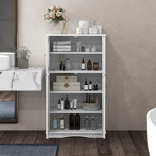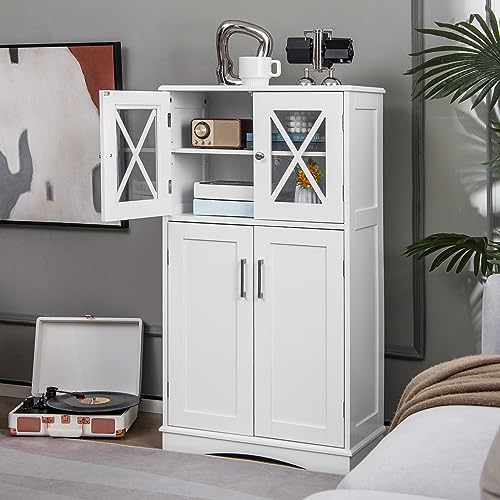 Giantex - وحدة تخزين أرضية للحمام- دولاب أرضية من الكتان مع أبواب وارفف قابلة للتعديل، منظم تخزين جانبي قائم بذاته للحمام وغرفة المعيشة والمدخل ووحدة تخزين المطبخ من جاينتكس (أبيض)