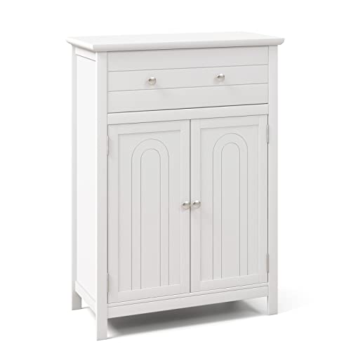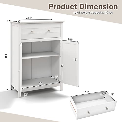 Giantex - Giantex Bathroom Storage Cabinet with Drawer - Floor Cabinet with Doors, Adjustable Shelf, Storage Organizer for Entryway, Laundry Room, Kitchen, Living Room, Bedroom, Freestanding Cupboard (White)