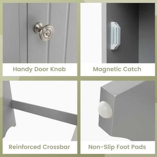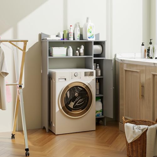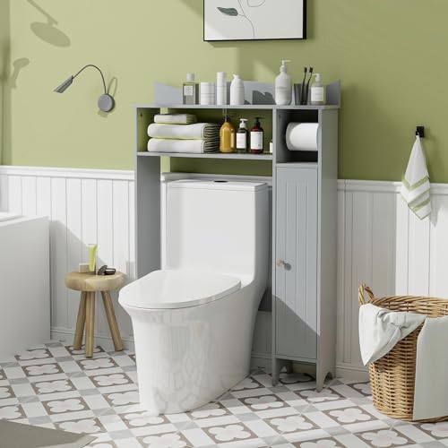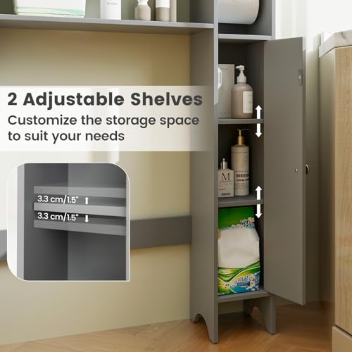 Giantex - Giantex Over-The-Toilet Storage Cabinet, Bathroom Freestanding Space Saver with 1-Door Side Storage Cabinet & Paper Holder, Toilet Rack Organizer Stand for Bathroom Laundry (Gray)
