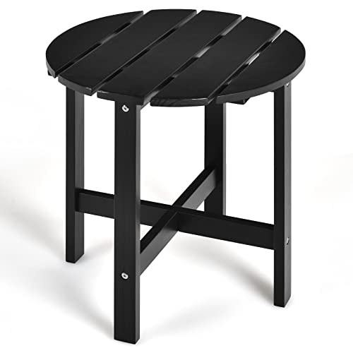Giantex - Giantex Patio Side Table 18’’ Outdoor Bistro Table with Stable Cruciform Structure, Round Small Coffee Table Suitable for Garden, Backyard, Patio, Balcony, Living Room Wooden End Table (1, Black)