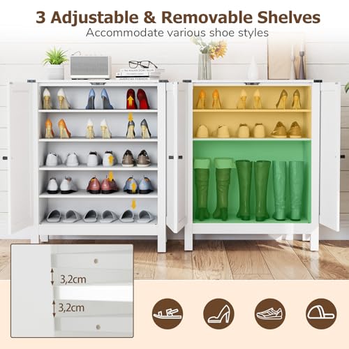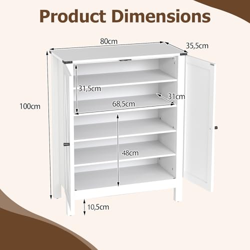 GIANTEX - GIANTEX Shoe Cabinet with 5 Levels & 2 Doors, Wooden Shoe Rack for Entryway, Narrow Cabinet for Shoes with Adjustable Shelves & Tilt Protection Devices, 80 x 35.5 x 100.5 cm (White)