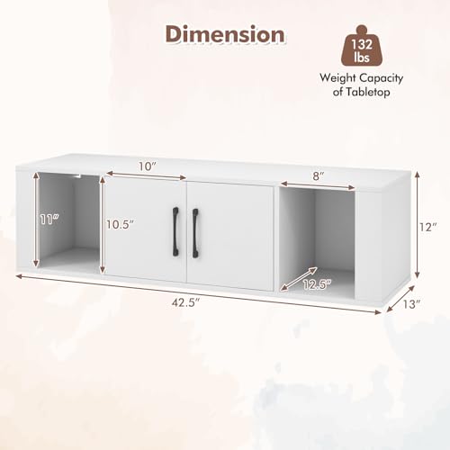 Giantex - Giantex Wall Mounted Storage Cabinet 2 Cube Floating Media Hanging Desk W/2 Doors and 2 Open Shelves, Home Office Furniture for Kitchen, Bathroom, Living Room Floating Console Hutch (White)