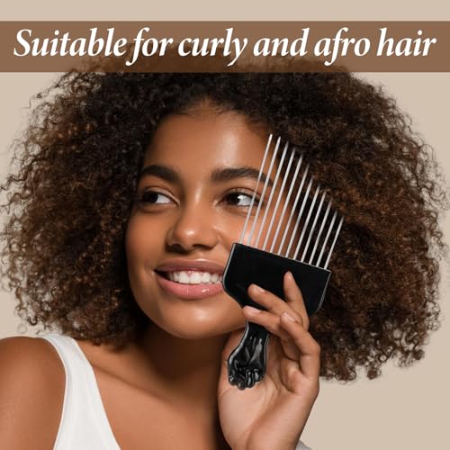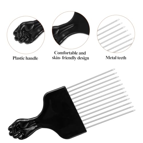 - 【Unique Design】: Our hair picks for curly hair have a black fist handle, are stylish and beautiful, and can quickly attract others' attention. With 12 wide teeth, suitable for combing long and thick tangled hair.