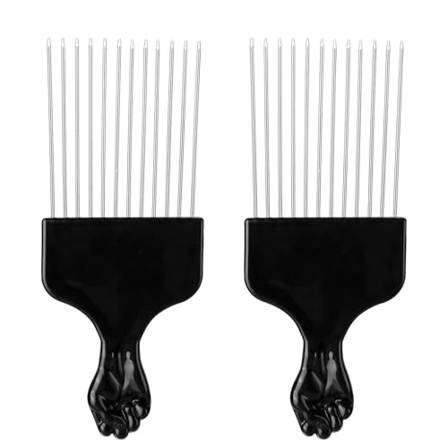 Giantree - Giantree 2 Pcs Metal Hair Pick Comb, Afro Pick for Women and Men Black Hair Pick for Curly Hair Styling Comb Lift Hair(Solid)