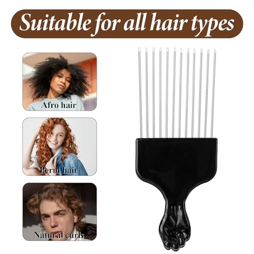 - 【High-quality Material】: The afro pick is made of a plastic handle and stainless steel teeth, which are sturdy and durable and not easy to rust. The stainless steel comb teeth are stronger and not easy to break.