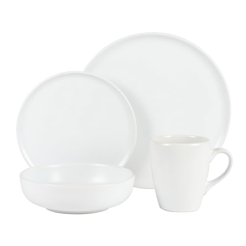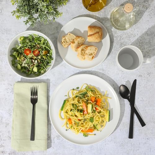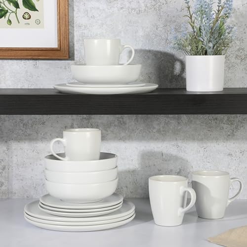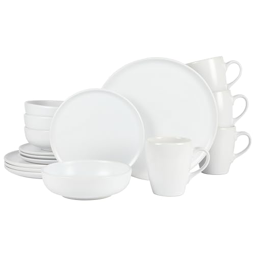 Gibson Home - Gibson Home Serenade 16 Piece Matte Stoneware Dinnerware Plates and Bowls Set – Made in Thailand - - Matte White