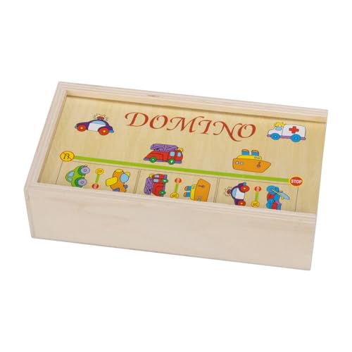 - The 28 dominoes are made of sturdy wood and decorated with colourful vehicle motifs that make the game even more fun. The stones are strong and durable, ideal for small children's hands and guarantee hours of fun.