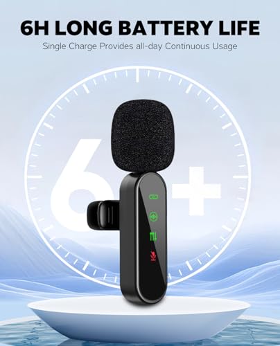 - 【Rechargeable Battery】-Gicorino Wireless Lavalier Microphone is designed for true creators. Built-in large-capacity rechargeable battery and low-power chip, this mini wireless lavalier microphone provides more than 6 hours of battery life. When using the lavalier mic, you can charge your device at the same time.