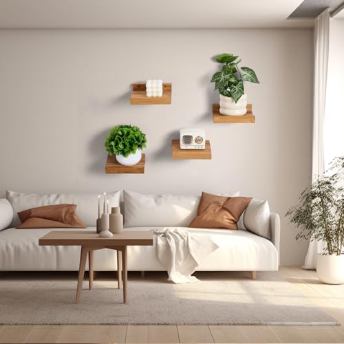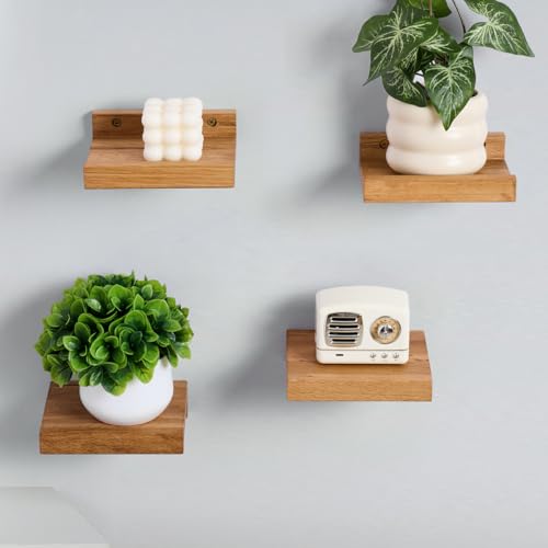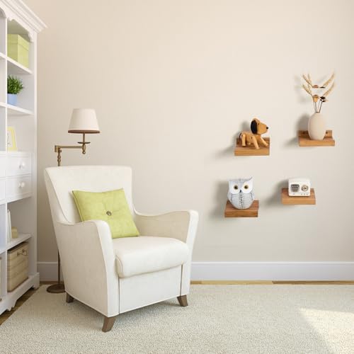 Gieanoo - ارفف عائمة من جيانو مجموعة 4 صغيرة خشب البلوط الصلب مربعة للحائط رف حائط صغير للأشياء الصغيرة معلق لتزيين غرفة النوم وغرفة المعيشة أزرق