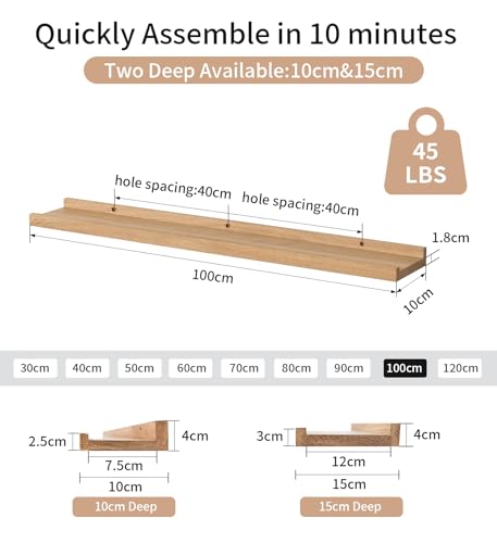 - 【Sturdy floating shelf】our picture shelves are made of oak wood, super sturdy, max weight capacity: 45lbs, each shelf measures with 4inch/6inch in width, and there are 5 length sizes available:30cm/40cm/50cm/60cm/90cm in length, different sizes meet your different needs