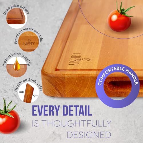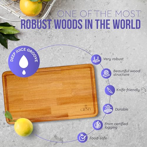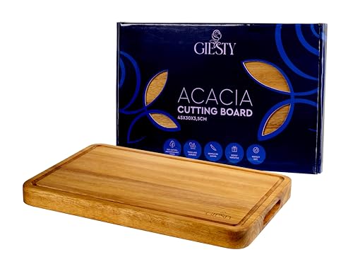 Giesty - Chopping Board for the Kitchen, Reversible Wooden Chopping Board with Juice Grooves and Handles, Acacia or RedWood, Wood Chopping Block (Acacia Wood, 45 x 30 x 3.5 cm)