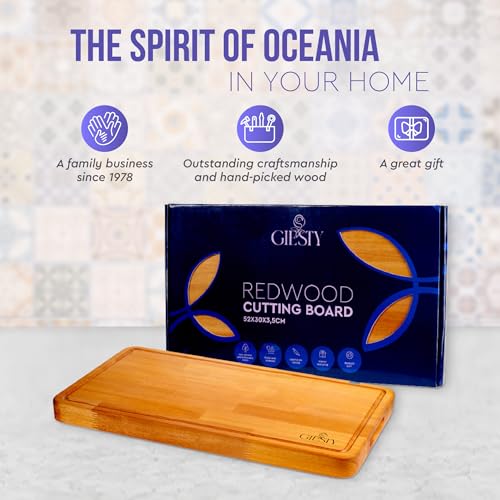 - Versatile sizes available - The Giesty chopping board collection offers a range of sizes in both acacia and redwood wood, including 35 x 25 x 1.8 cm, 40 x 27.5 x 2.5 cm, 45 x 30 x 3.5 cm and 52 x 30 x 3.5 cm.