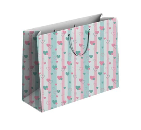 Generic - Gift Bag with Hearts Pattern, Pink and Mint Stripes, Paper Size (40x25x8).
