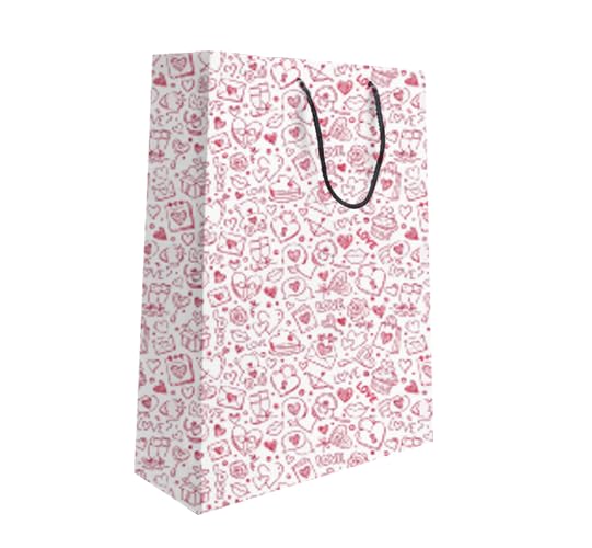 Generic - كيس هدايا بنمط قلب وردي وخلفية لون أبيض، مصممة بمقابض حبل، مقاس متوسط (26 × 40 × 8)، قطعة واحدة