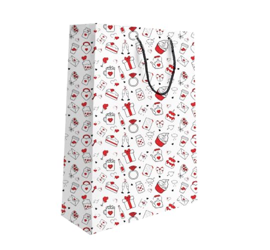 Generic - Gift Bag with Theme, White with Red Hearts (26x40x8)1PCS