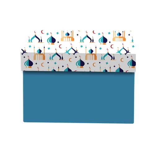 Generic - علبة هدايا بغطاء مزين بنقش إسلامي لقبة مسجد زرقاء وهلال وفانوس رمضان - مقاس (25 × 18 × 9 سم)