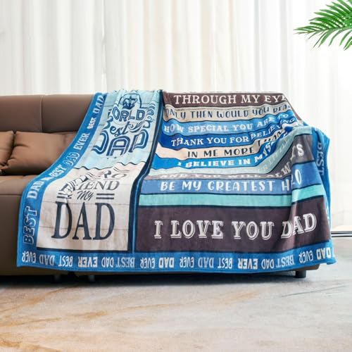 MOODEEY - بطانية رمي مناسبة كهدايا للأب من الابن وهدايا عيد ميلاد من الابنة بطانية لأفضل أب في العالم لعيد الأب مع عبارات رائعة متعددة (لون ايه)