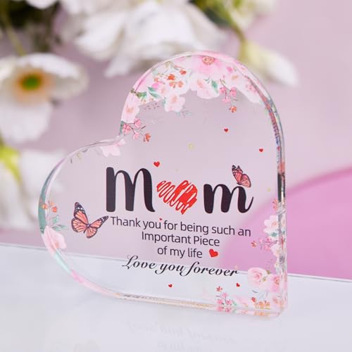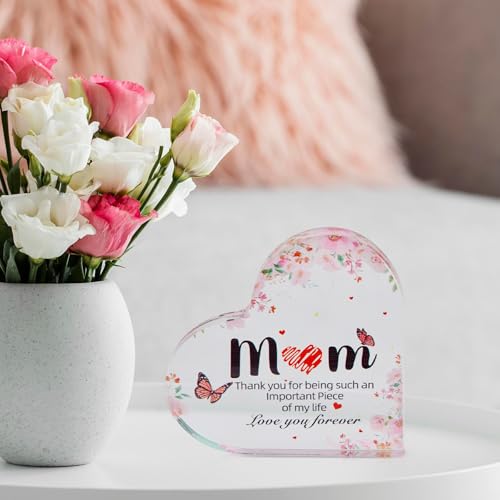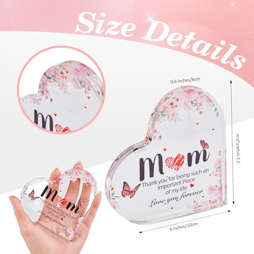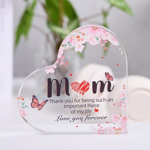Fasinheaco - Gifts for Mom - Funny Mom Birthday Gifts from Daughter,Son - Engraved Acrylic Block Heart Keepsake 4.3 x 3.3 Inch,Mothers Day Thank You Gift for Women