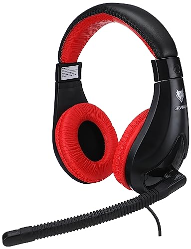 GigaMax - سماعة على الأذن سلكي 2 سوكت للكمبيوتر من جيجا ماكس بميك و صوت محيطي أسود